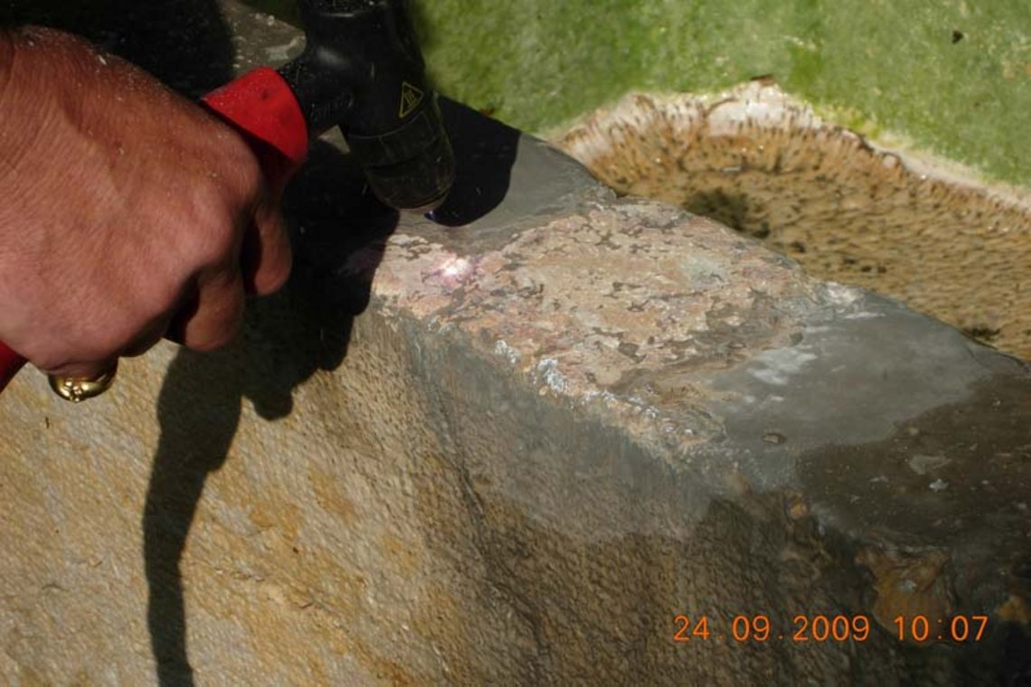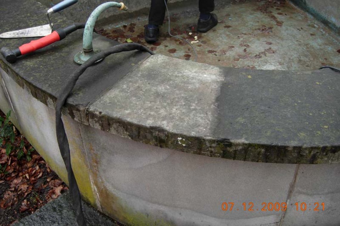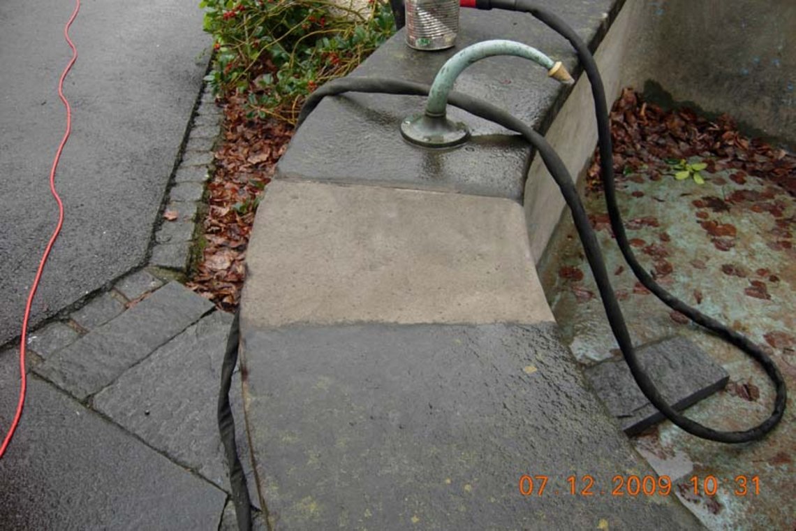 Vollständige Vernichtung der Algen, Flechten und Pilze bei den Fassaden und Steinen